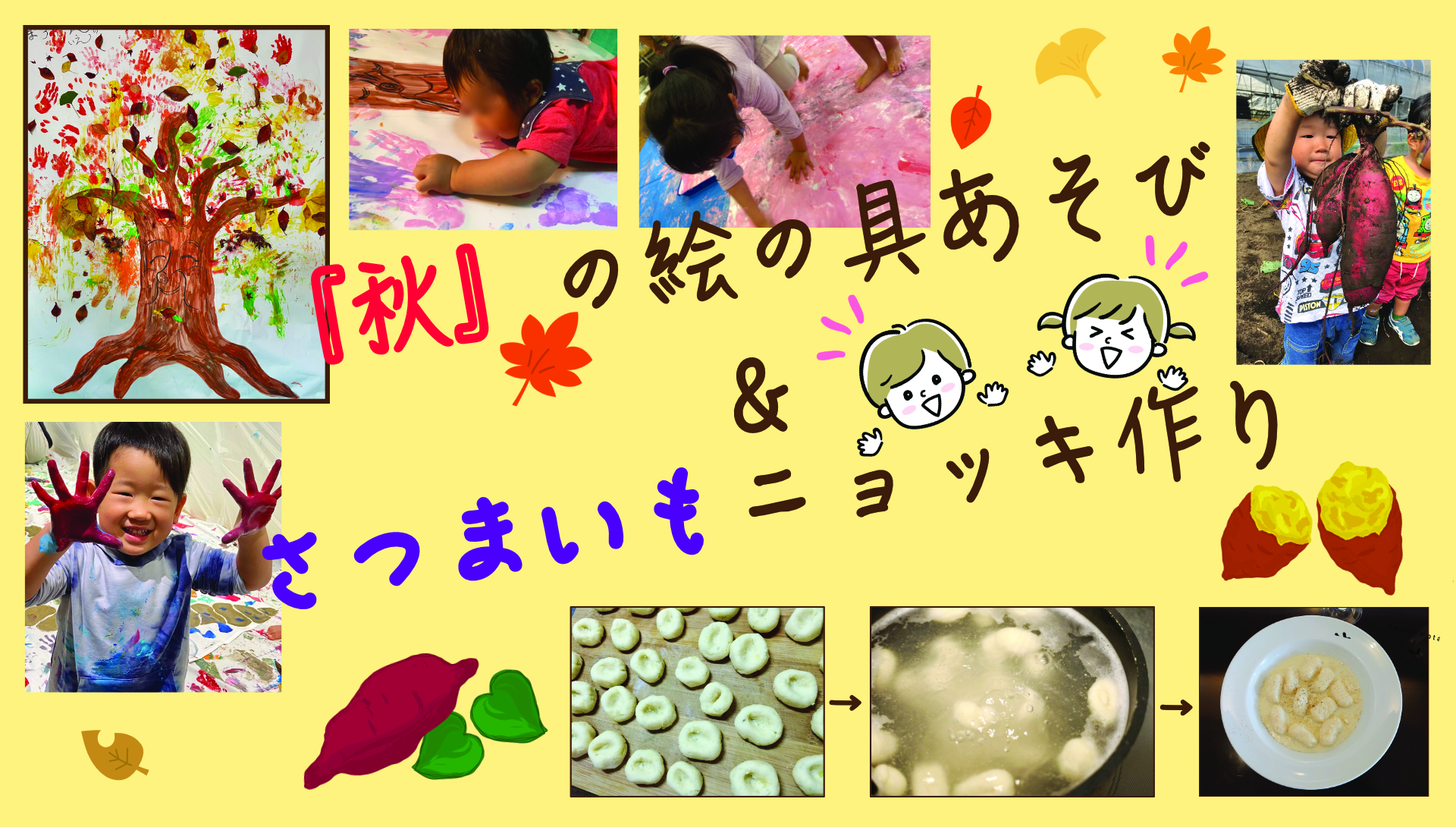 ★☆みんな大好き『絵の具あそび』と、秋の味覚を楽しむ『さつまいもニョッキ作り』☆★