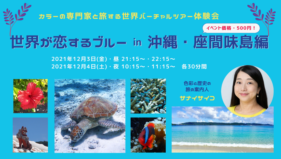 「カラーの専門家と旅する世界バーチャルツアー体験会・世界が恋するブルー in 沖縄・座間味島編」