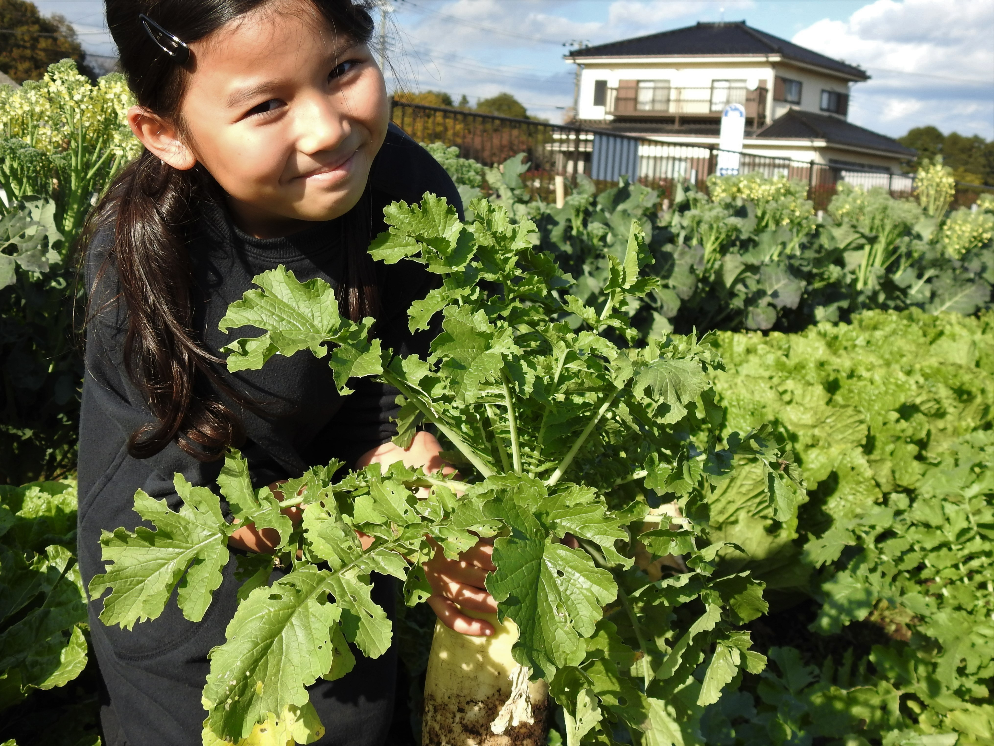 集合は、あけぼの山農業公園バス停(我孫子駅北口⇒あけぼの山農業公園)です。(お車の場合は、富勢東小学校手前のあけぼの山農業公園本館まえの駐車場をお使いください。)トウモロコシ、おおまさり、サツマイモでも定評があった篠原さんの白菜2個、大根3本、ブロッコリー(1袋)が収穫できます。他に人参、ルッコラ、春菊、小松菜などがあります。今回は、タマネギの植付の農作業体験もできます。『お野菜どっさり』 お帰りには、いささか重たい思いをしますお申し込みは、ご家族1組の場合、『大人1人』でお申し込みください。(同伴者は大人こども共に無料です)お申し込み時に、お車利用か、バス便利用かを教えて下さい。