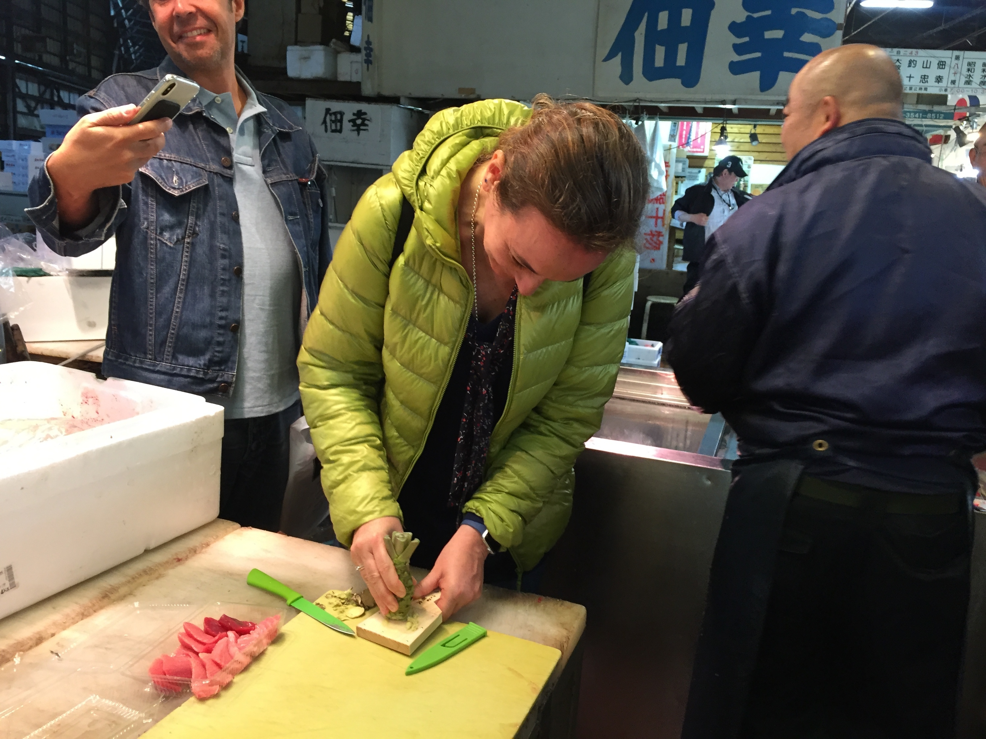なぜなら7月末より築地に場所を借りました!ツアーデスク(日本語&英語の約50分のツアー)とわさびアイスクリームのお店になります。わさびとアイスクリームが意外に合うんです!お店はまだ内装工事中ですが、屋上でわさびアイスの試食会もします。もちろん、通常ツアーの生の本鮪をみんなでおろした生わさびで食べていただきますよ。多くの方のご参加をお待ちしております♩