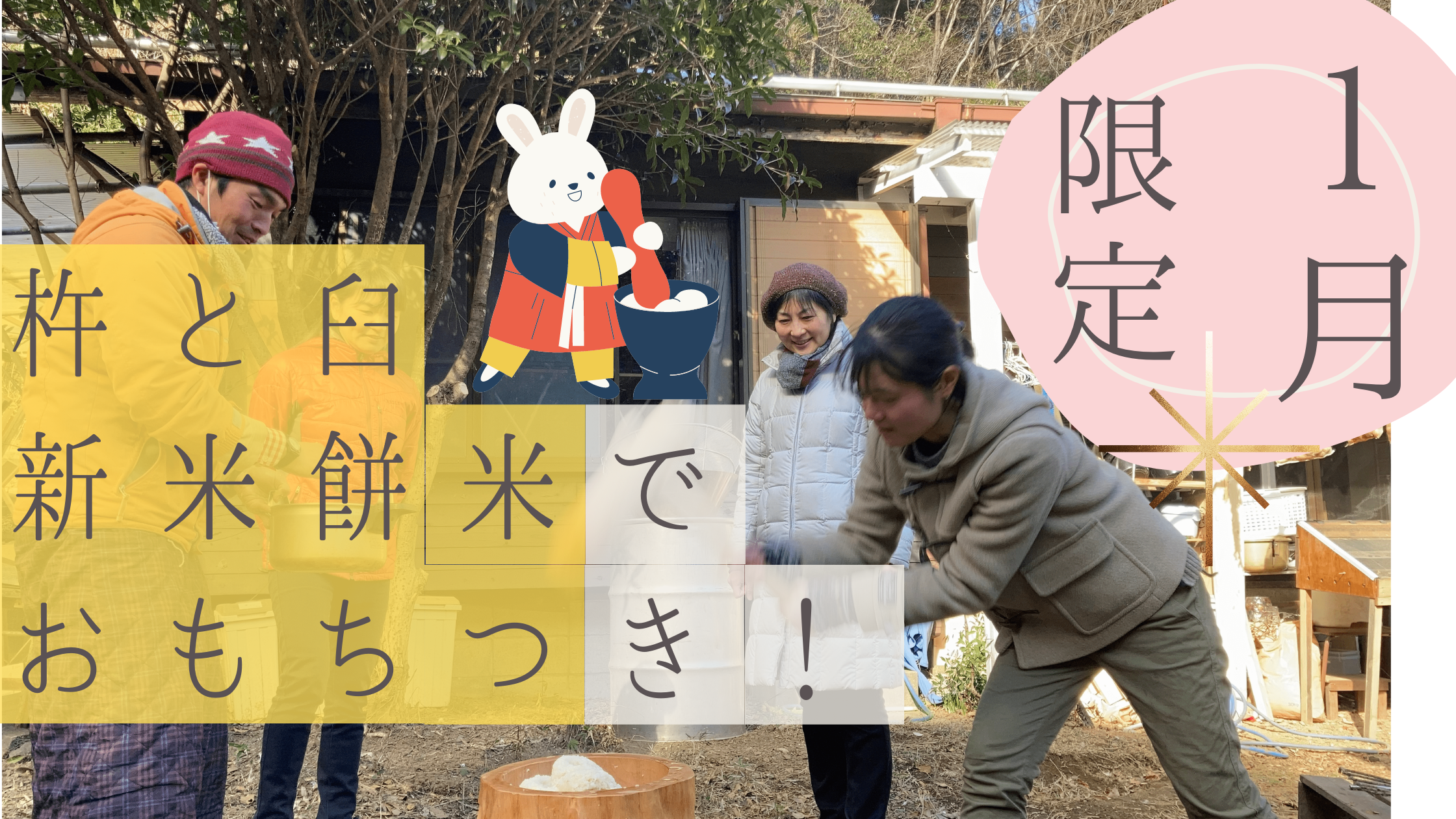 【1月限定!】杵と臼でおもちつき。無農薬で育てた新米・もち米を使用!