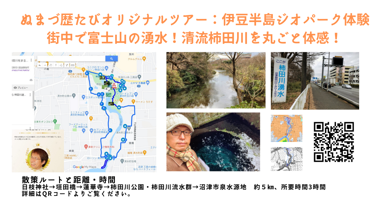 その湧水群や柿田川の周りを一周して、伊豆半島ジオパークを体験・体感して頂けるのが、このツアーでございます。