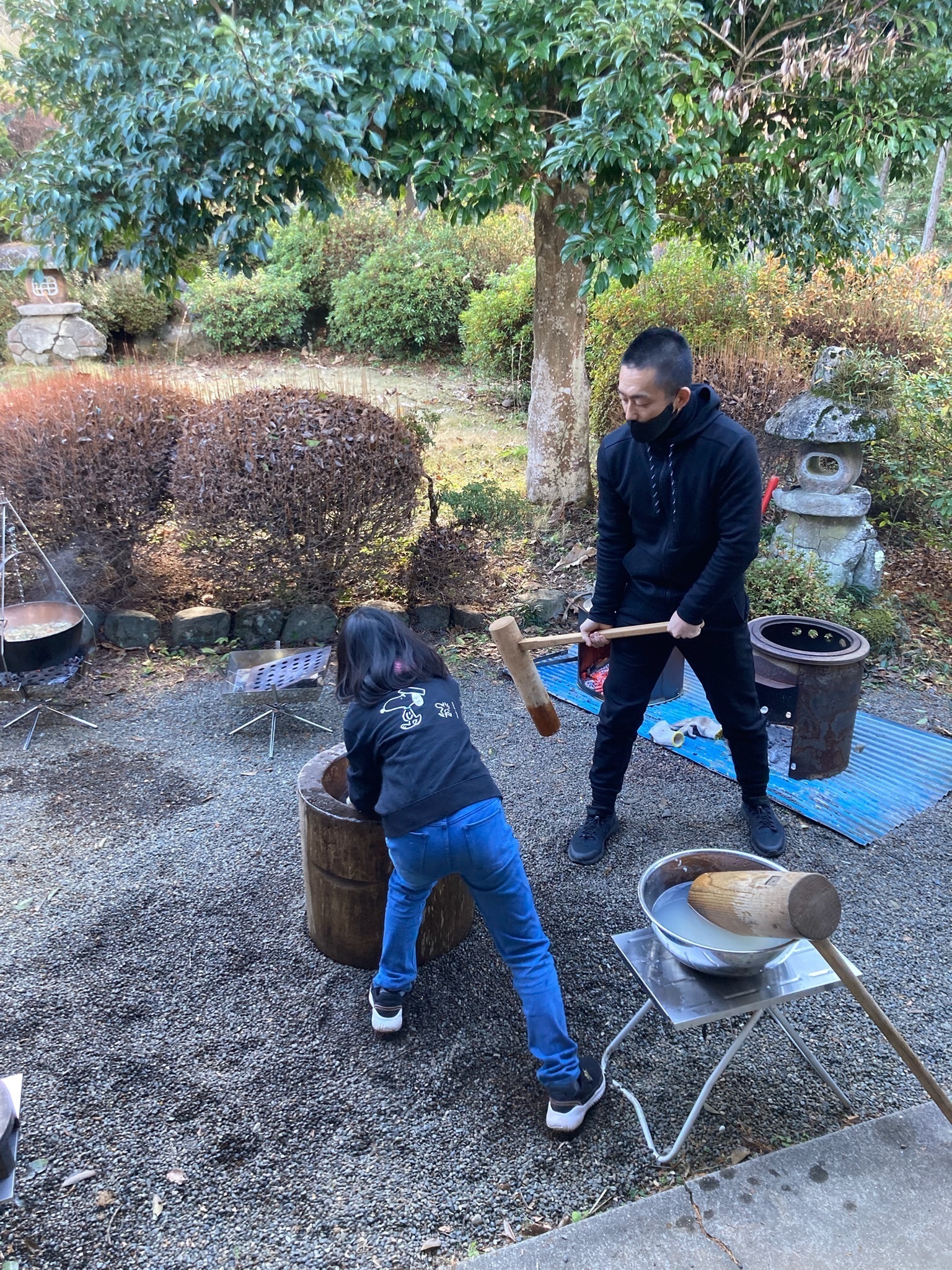 ◯10時半ごろ〜 餅つき きな粉、大根おろしなど具材の調理