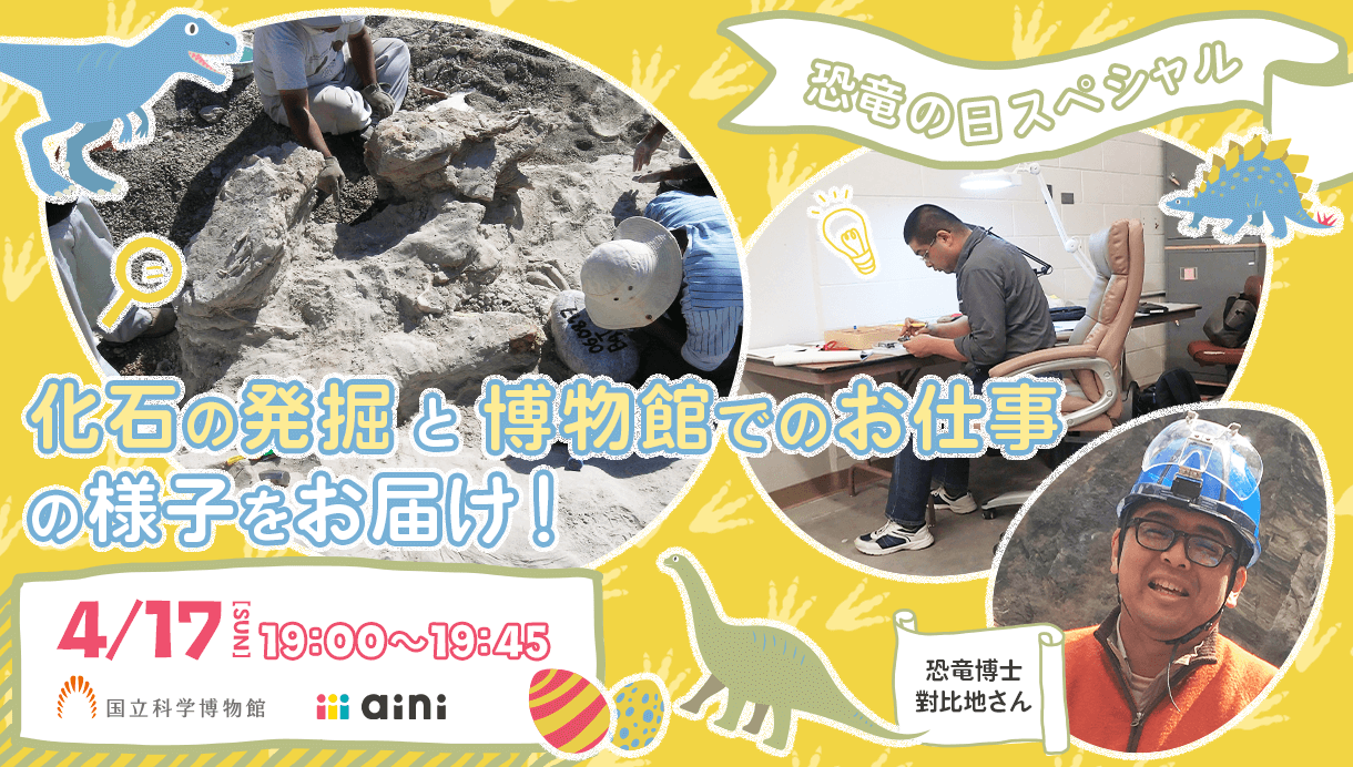 今回は、ゴビ砂漠での化石の発掘をしていた時の話しを交えながら皆さんがもっと恐竜を好きになる体験を開催いたします。