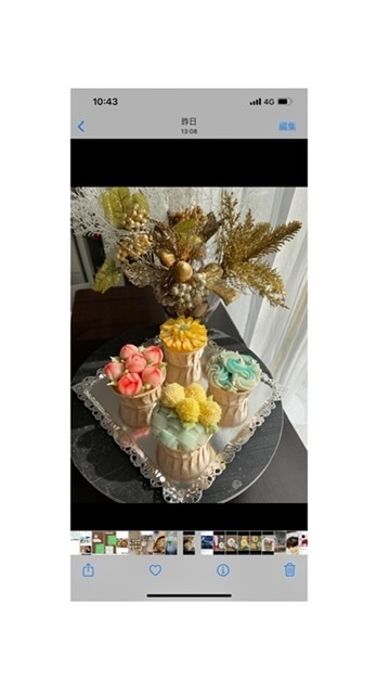 レッスンでは、3つのカップケーキをお花をデコレーションし、世界に一つだけのアンフラワーケーキを一緒に作ります。ケーキを持ち帰られたら、ご家族はビックリすること間違いないです!!ご友人にプレゼントしてもとても喜ばれますよ♪お花はピンポンマムとダリアを入れた3種類をしぼります。初心者様向けのレッスンとなります。『やってみたいけど、私にできるかしら?!』と思われますよね?私もそうでした。でも何より、楽しく作品を作ることが一番だと私は思っています。体験レッスンをされる方は必ず『楽しいかも♡』『ハマりそう』『可愛い!!』と作りながら話されますよ。まずは、アンフラワーの楽しさや、可愛さを体験してみて下さい(^^) アンフラワーケーキを一緒に作り、一緒にたべましょう!レッスン当日は、駅から講師自宅まで送迎、もしくは自宅へ直接お越しいただきます。自宅内では、感染予防の為注意事項がありますので、ご理解下さい。お会いできるのを楽しみにしています!