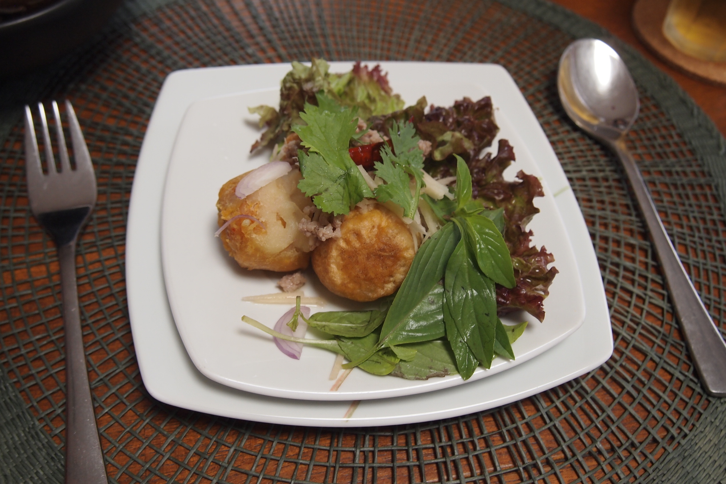 カオ・トード・ネームソット(レッドカレーライスサラダ)