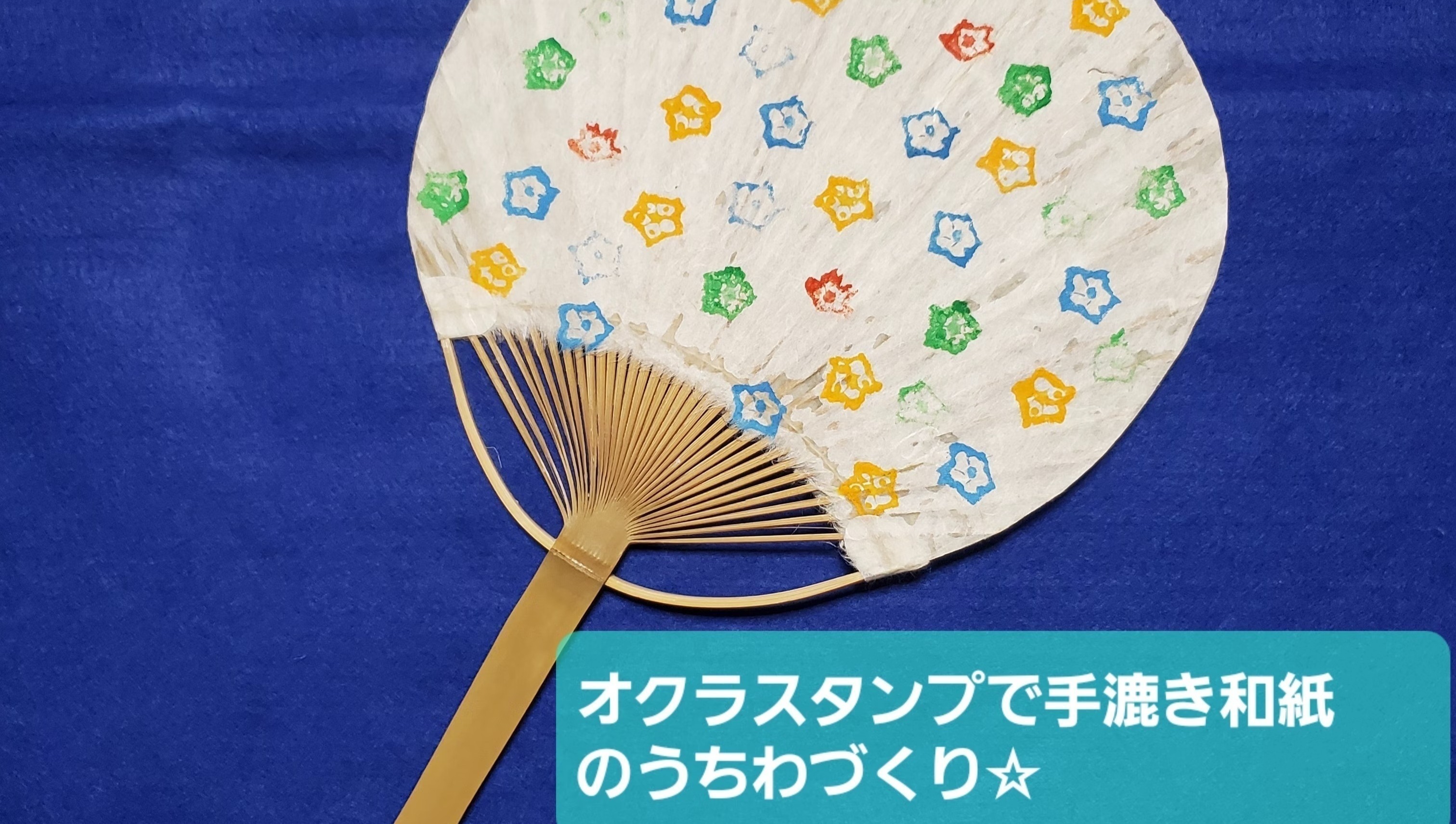 今回は会場のある秋田県羽後町で作られている夏野菜「ひばり野オクラ」を使います!大きすぎたり変色してしまったりして出荷できなかったオクラを活用して野菜ハンコをしましょう🥬オクラの切り口の星形を活かして和紙にスタンプし、竹の骨組みに貼り付けてうちわを作ります✨楮の木の皮で作られる和紙+竹の骨組みで作りますので天然素材でできあがるうちわです🍉廃棄されるオクラを使いますのでサステナブルな工作にもなってます☺