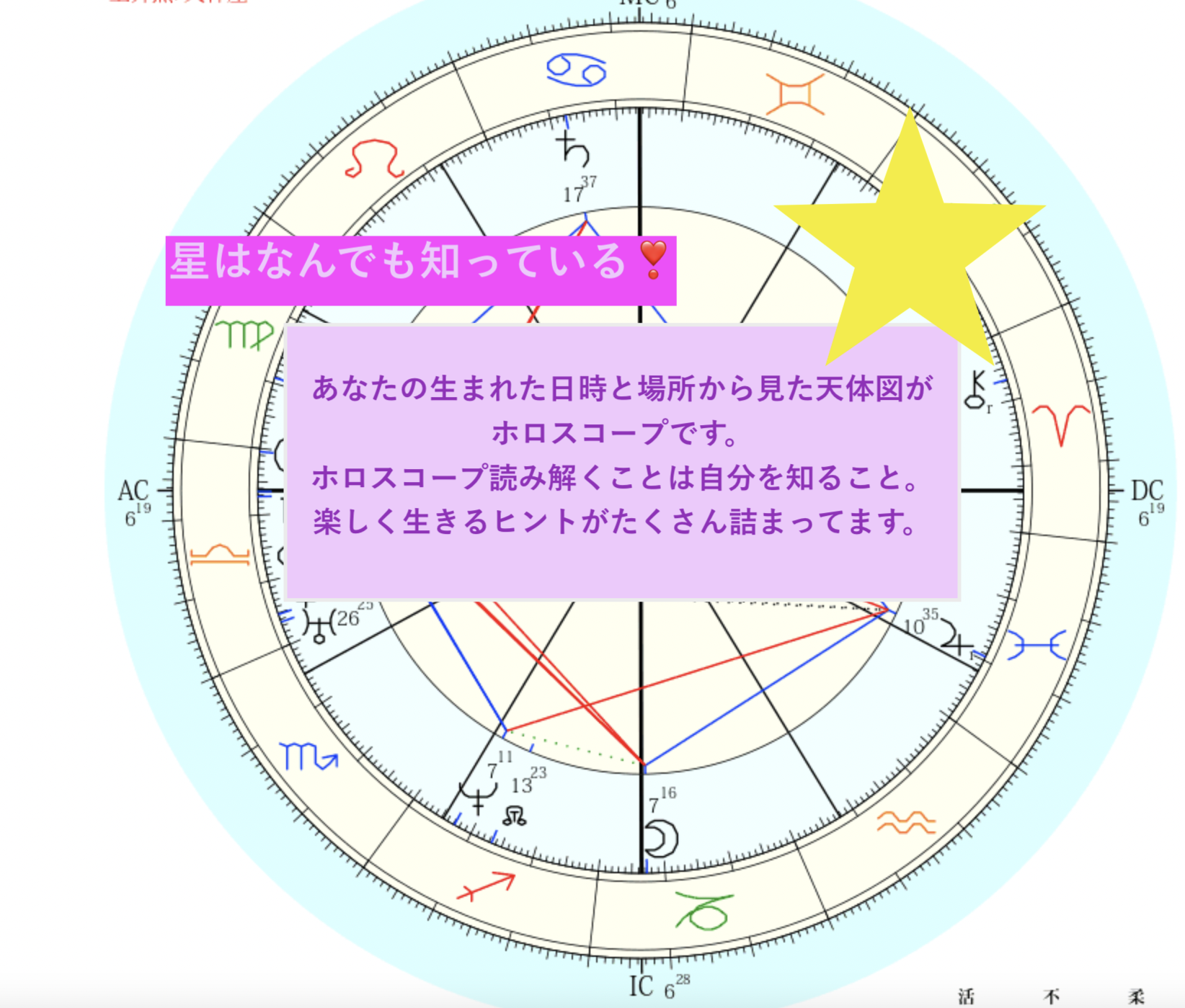 生まれた時の10個の天体がどの位置にあったのかを示しているのがホロスコープです。