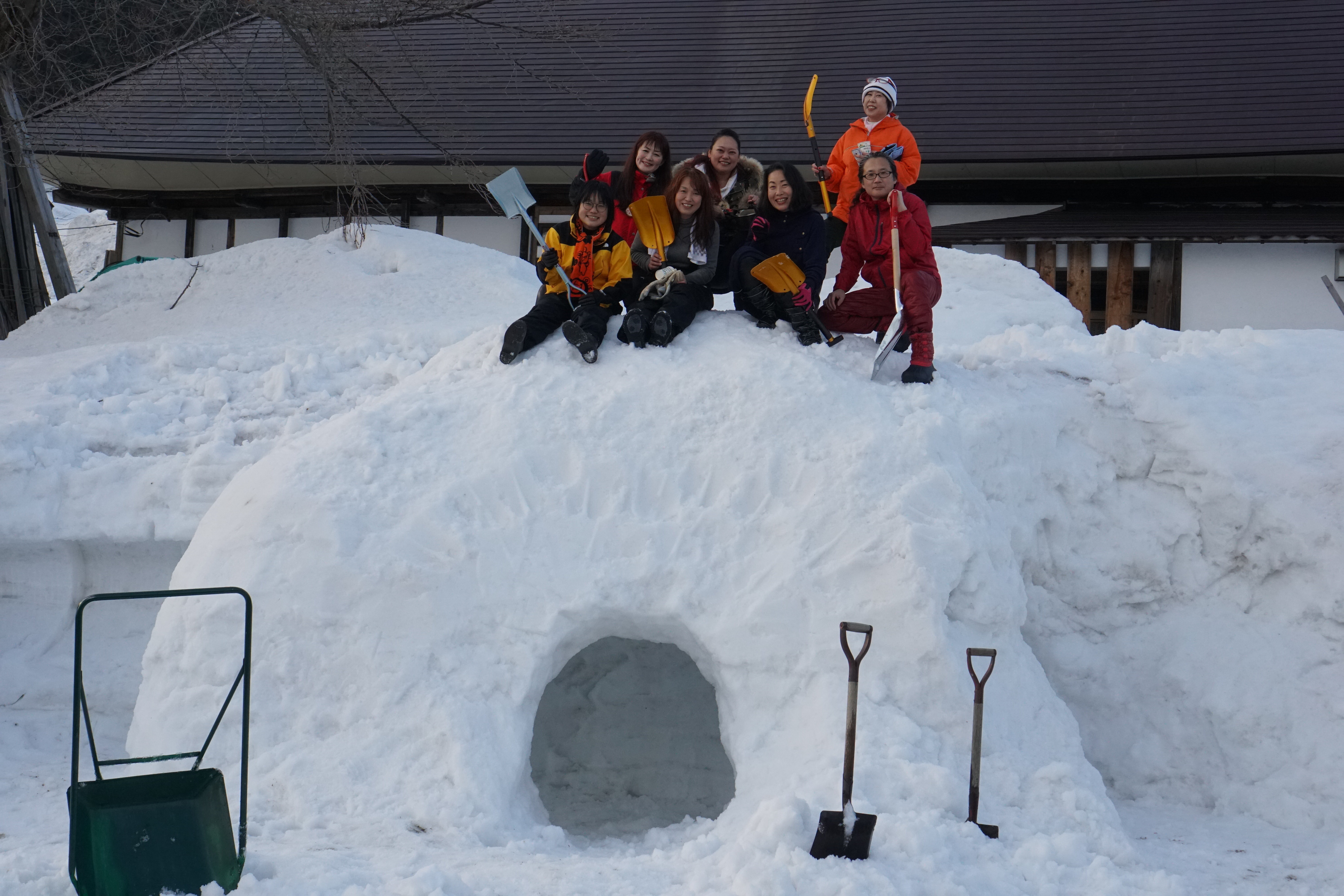 たっぷりの雪でかまくらをつくります。人生に一度はぜひ、かまくらづくり体験を!!