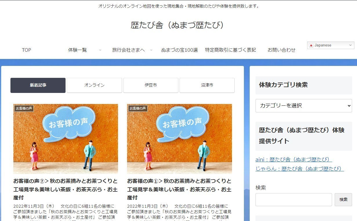 一方で、歴たび舎(ぬまづ歴たび)のホームページは
