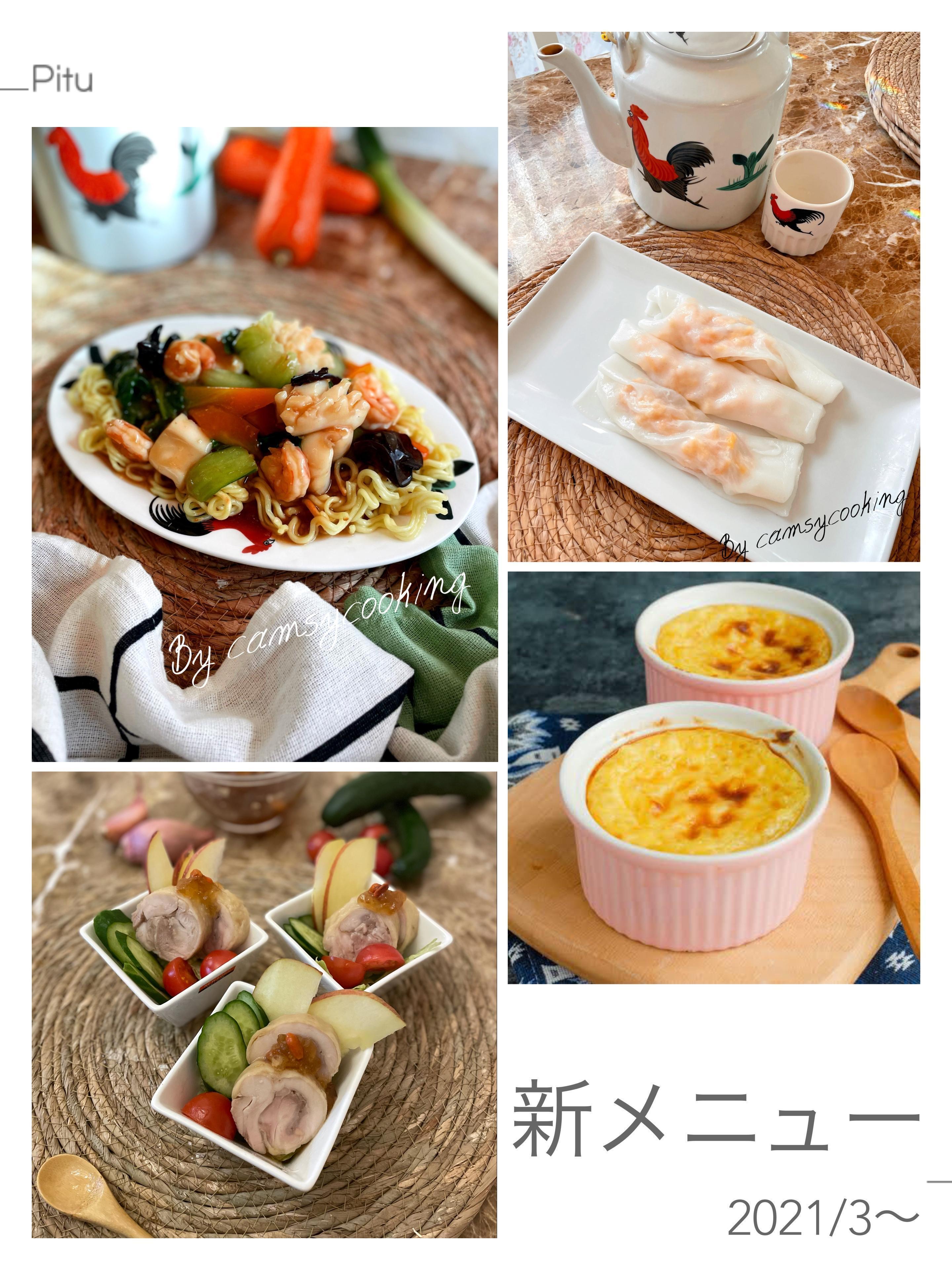 お品書き香港えび腸粉五目あんかけ焼きそば酔っ払いチキンサラダ焼きタピオカプリン