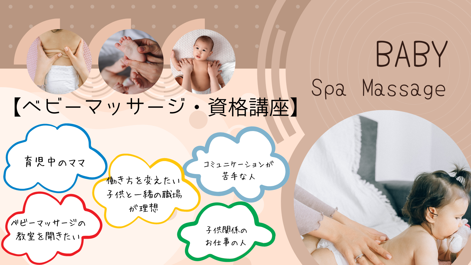 ・Touch hug式ベビーマッサージ・キッズマッサージを他者に教えることができるスキル