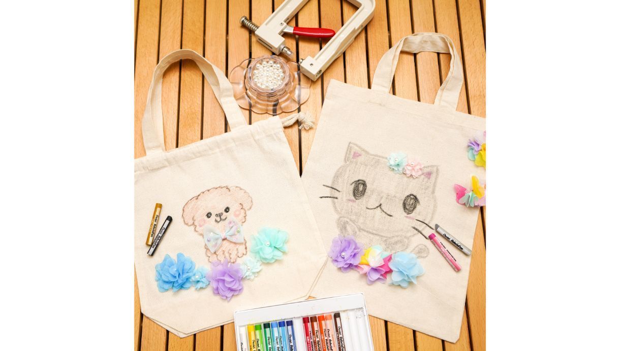 トートバッグに布に描けるクレヨンでお絵かきしてから、