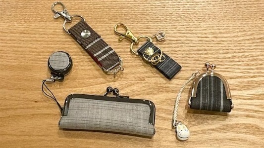 今回は、能登上布のハギレからお好きなものを選んで、「ちびがま口」「印鑑ケース」「キーホルダー」のいずれか1つをおつくりいただけます。