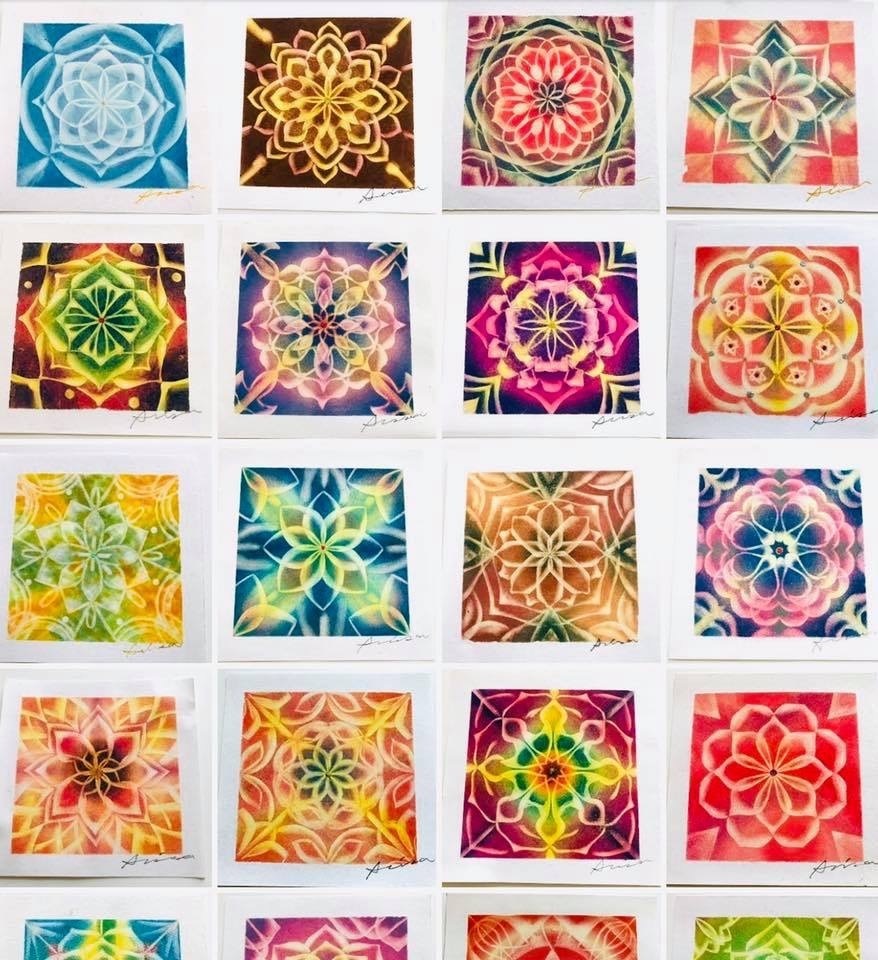 自分のインスピレーションに基づき、型紙を作ってマンダラを展開していきます。