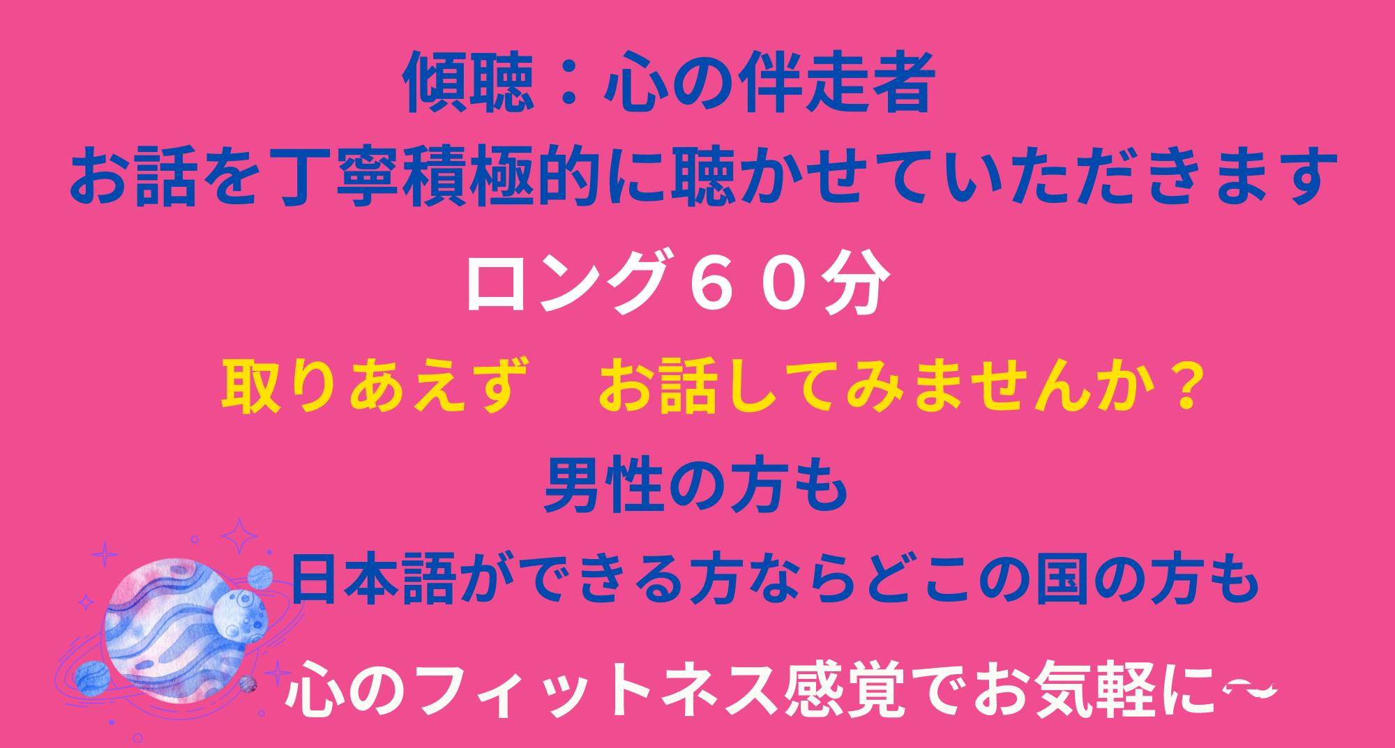じっくり話したい、ゆっくり整理したい、長くなる可能性がある場合は、60分傾聴 をおすすめします。30分より少しお得になっています。