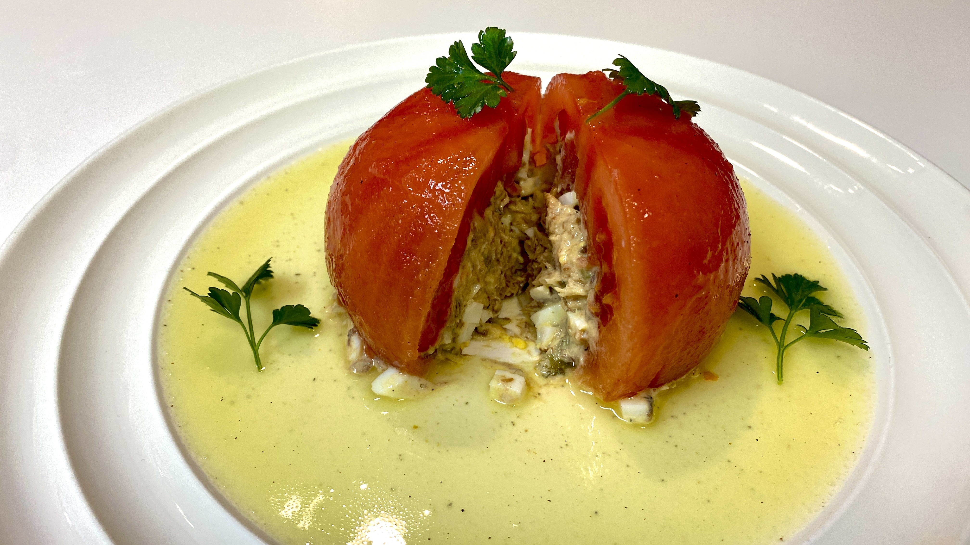 最も美味しい時期のトマトに、ジューシーなサバを詰めました。オメガ-3脂肪酸が豊富で健康に必要な栄養素を含んでいます。さらに、ボイルドエッグとマヨネーズも入っています...一口ごとに地中海の海岸へと連れて行ってくれる、味の爆発をお楽しみいただけます。ヘルシーな食事を心掛けている方にも最適な選択肢です。低カロリーで必須栄養素、ビタミン、ミネラルが豊富に含まれており、健康を気遣いながら味を犠牲にすることなくお楽しみいただけます。前菜やメインディッシュ、さらにはサラダの美味しい一品としても最適です。