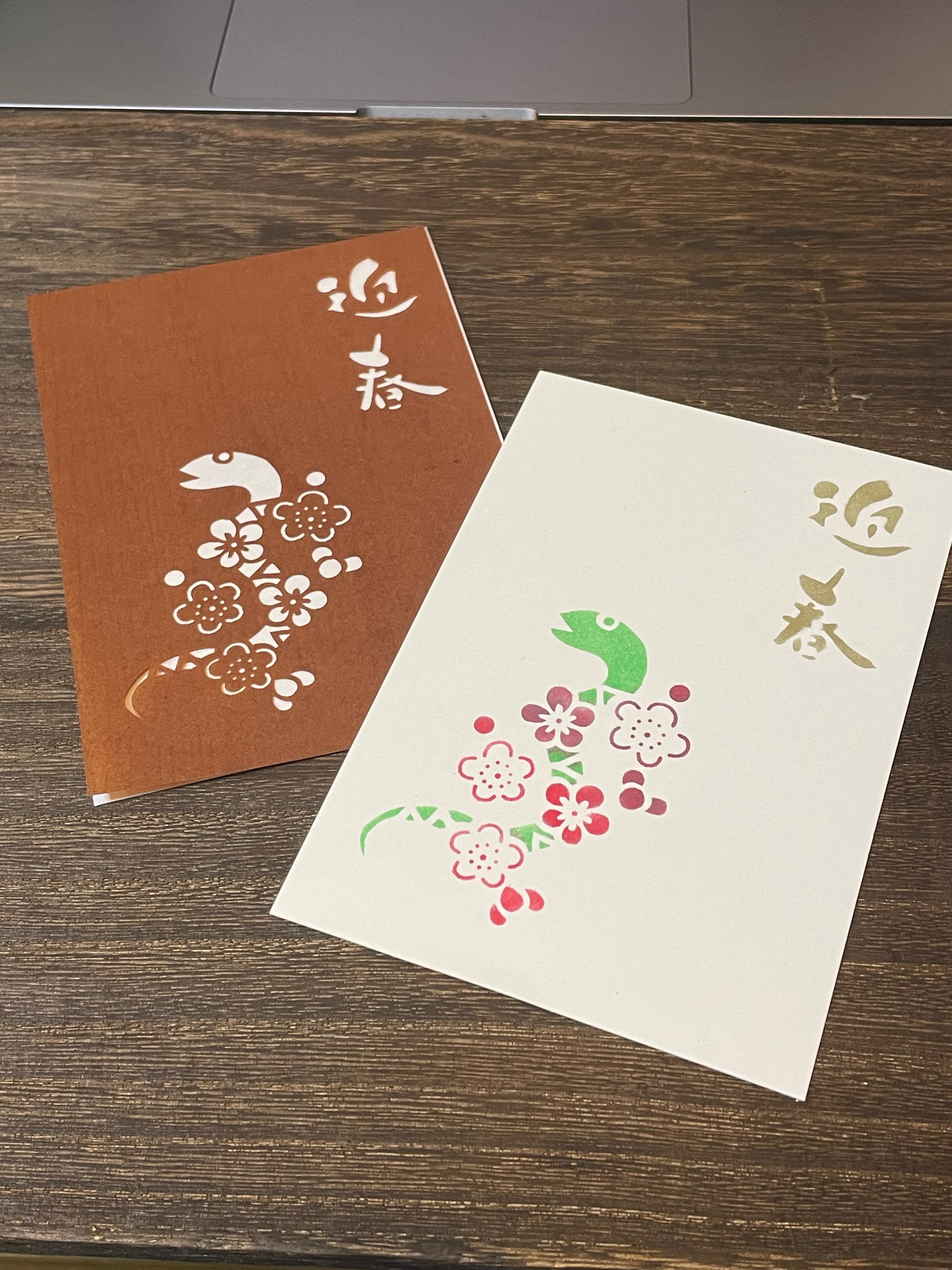 本講座では、着物の型染めに使われる「伊勢型紙」を使って、ポストカードに型染めをします。