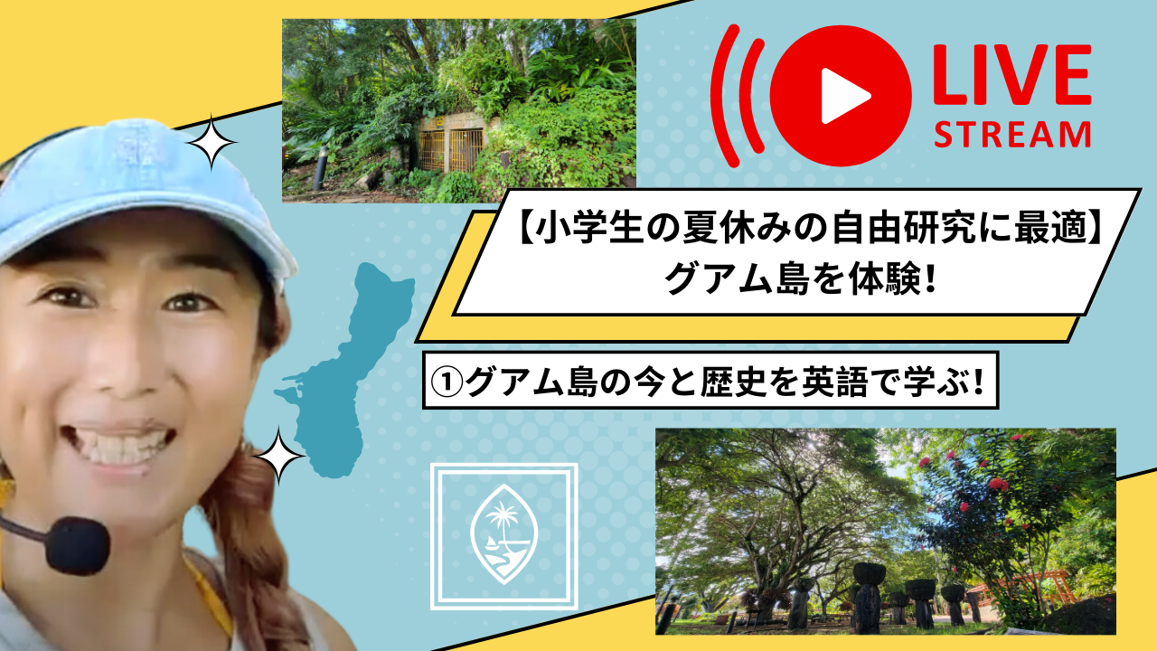 Hafa Adai!みなさまこんにちは!「夏休みの自由研究のテーマはどうしよう?」小学生の子を持つと毎年悩んでしまう課題です。☆みなさまからのリクエスト「グアムからバーチャルツアーで子供英語教室をやってほしい!!」がこの夏休み実現します☆グアム島のこと(島の大自然、歴史や文化)を学びながら、簡単な日常英会話も身に着けちゃいましょう!※お子様でなくてもご参加いただけます♡ プログラム進行中はお子様が優先となりますのでご留意くださいませ。おなじみのホスト・グアミンゴこと山口あやかに加え、この度はバイリンガルの娘(高校性)も一緒にご案内します。みんなで楽しく学んでいきましょう~!------------------------------------------------------------------------------------------------- グアム島より【生配信】でお送りいたします。①グアム島の今と歴史を英語で学ぶ!https://helloaini.com/travels/44880グアムは日本から一番近いアメリカです!毎年4万人の観光客が訪れる常夏の楽園グアム。第二次世界大戦では日本と戦争をしたこともあり、スペインの統治下にあったこともありました。そんなグアムの今と歴史を知る時間です。【ツアーイメージ】①グアムの政治と経済の中心、アガニア地区からツアースタート!②まずは英語を使ってみんなで自己紹介をしましょう!③そもそもグアム島って?まずはグアム島の今について学びましょう。④「スペイン広場」散策をしながらグアムの歴史についてのお話。この広場は歴史にまつわる建物や名残りが多くある観光スポットです。⑤ラッテストーン公園でグアムの原住民「チャモロ」の遠い昔の生活について学びます。⑥太平洋戦争時代の防空壕跡から、日本との結びつきとその悲しい過去について垣間見ます。⑦質疑応答コーナー-------------------------------------------------------------------------------------------------・参加いただく方のレベルに合わせて、お姉さんによるネイティブの英語と、ママの日本語の解説と織り交ぜながらツアーを進めます。・ツアーで学んだことをまとめて、夏休みの自由研究に仕上げましょう!ツアーで使用した画像やスライドなどはツアー終了後に差し上げます。★「①歴史学習コース」「②文化学習コース」「③自然学習コース」の3ツアーまとめてお申込みの方には、オリジナルグッズをプレゼントします!ぜひセットでお申込みください!※3回セットのツアーは別枠にございます。皆さまにお会いできることを楽しみにしております!【ご留意いただきたい点】〇 当日はZOOMを使用します。予め携帯もしくはパソコンにインストールをおねがい致します。〇 事前にainiのグループ機能より zoomに参加する為の ID、パスワード、URLを送ります。〇 接続方法等、ご心配な方は当日、5-10分前を目安にZoomにログインをお願い致します。※ZOOMについての説明は下記にございます。〇 途中入退場に制限はございません。〇 皆様が気持ちよく集えますよう出過ぎた行為はお控えください。〇 ツアー中もご飲食などOKです!ご自由にラフな状態でご参加ください。〇 ご家族でのご参加も可能です。〇 屋外中継となりますため、途中音声が聞こえづらい、画面が見えづらい等のトラブルが発生する可能性がございます。〇 通信環境により切断された場合は弊社では対応できません。〇 天候は指定できませんため、雨の日もあるかもしれません。南国の雰囲気を体感していただければ幸いです。〇 可能な限り、お顔公開での参加をお願いしております。〇 ホスト(またはゲスト)の都合により代役となる場合もございます。〇 ご入金後のお返金は致しかねますので、ご了承ください。【ツアーご参加の為のツールZoom(ズーム)について】参加されるお客様に、事前にZoom入室のご準備をお願いします。(1)オンライン会議アプリZoom(ズーム)とは米国に本社を置くオンライン会議サービスです。日本でも多くの企業が利用しています。オンラインセミナーでも利用が多く、ゲストは事前登録なく参加することができます。ツールは日本語対応、無料です。(2)Zoom(ズーム)のダウンロードリンクパソコン(PC/Mac)https://zoom.us/download#client_4meeting「ミーティング用Zoomクライアント」をダウンロードしてください。パソコンの場合はアプリのインストールなしでブラウザからでも参加ができます。↓↓↓↓↓↓↓↓iOS(iPhone/iPad)<AppStore>https://apps.apple.com/us/app/id546505307Android <GooglePlay>https://play.google.com/store/apps/details?id=us.zoom.videomeetings