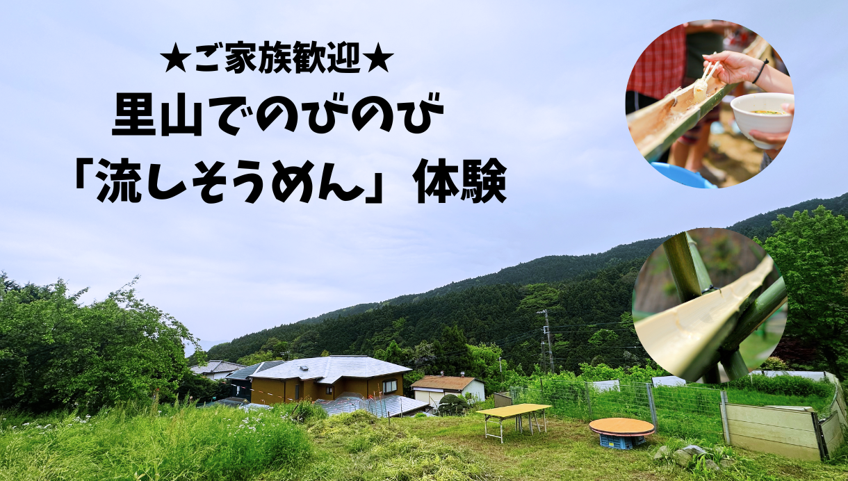 東京からも1時間程度でつく自然あふれる南足柄市矢倉沢地区で、流しそうそうめん体験をします。
