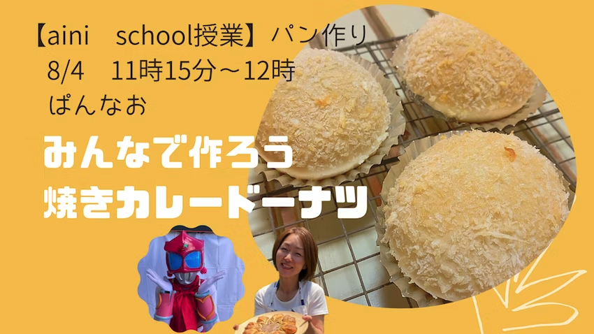 aini school 小・中等部 主催のオンライン授業が体験できます♬aini school 小・中等部は学校に行かない日のオルタナティブスクール(フリースクール)です! 詳細はこちら:https://helloaini.com/entry/featuring/aini-freeschool/だれでも気軽にaini school 小・中等部の授業に参加できます。マイクオフ・カメラオフも大歓迎!様子を見るだけでもOKです♬8月4日(金) 11:15~12:00開催の授業です。授業は45分で行われる予定ですが、延長する場合があります。授業のジャンル:#家庭科担当ホスト:親子パン教室colzaコルザ https://helloaini.com/users/71635授業内容:こんにちは!パンづくりの【ぱんなお】です🥖夏(なつ)といえばカレー!【焼き(やき)カレードーナツ】を作ります🍛油(あぶら)であげなくても、サクッとするよ!※zoomで授業(じゅぎょう)をやります。見学(けんがく)もOK!※つくる人は、材料(ざいりょう)をはかってから参加(さんか)してね!パンは、強力粉(きょうりきこ)やインスタントドライイースト、あとは、おうちにある材料(ざいりょう)でつくれます😊【授業(じゅぎょう)のながれ】1週間前(いっしゅうかんまえ)に【#授業アナウンス】へ材料(ざいりょう)を伝え(つたえ)ます。◆11:05〜11:20までにzoomにはいる(ざいりょうをはかってからzoomにはいる)※授業(じゅぎょう)の10分前からzoomにはいれるよ!はかり方(かた)がわからない人は、10分前にきてね!◆11:20〜12:00パンづくり ※延長する可能性があります。ご了承ください。(こねる→ぐざいづくり→せいけい→ぱんなおがオーブンに入れたらおわり)パンがやけたら『#パンづくりべや』に、しゃしんをおくってね💕【イーストについて】イーストはインスタントドライイートをつかいます。【どうぐ】はかりおおさじ、こさじのスプーンたいねつボウルゴムベラカード(スケッパー)ラップめんぼうオーブンシート(クッキングシート)キッチンばさみお弁当用のアルミカップ9号 6枚うちこ(きょうりきこ)オーブン電子(でんし)レンジ←オーブンのつかいかたをしらべておいてね!オーブンざら 1まいみなさんのさんかを楽(たの)しみにしています♡▼aini school 小・中等部の1日のスケジュール9:30~10:00 ホームルーム10:00~11:00 宿題&読書タイム11:00〜11:15 振り返り&休憩11:15~12:00 ホストによる体験授業←ここの授業を体験いただけます12:00~13:00 お昼休憩13:00~16:00 自由活動時間aini school 小・中等部 日々の様子はこちら:https://helloaini.com/users/216112/notes▼参加料金(aini school小・中等部入学者以外)1,000円※ 1回線の料金です※「大人1人」料金でご家族皆様でお楽しみ頂けます授業はzoomを使用します。=========aini school 小・中等部は現在2週間無料お試し体験をやっています♬お申し込みいただくと、こちらの体験授業も含め、全て無料で受講できます!2週間無料体験申込:https://helloaini.com/entry/featuring/aini-freeschool/form-otameshi/楽しめそうか、お子さんにあうか、ぜひ気軽にお試しいただけたらと思います♬=========aini school 小・中等部の詳細:https://helloaini.com/entry/featuring/aini-freeschool/