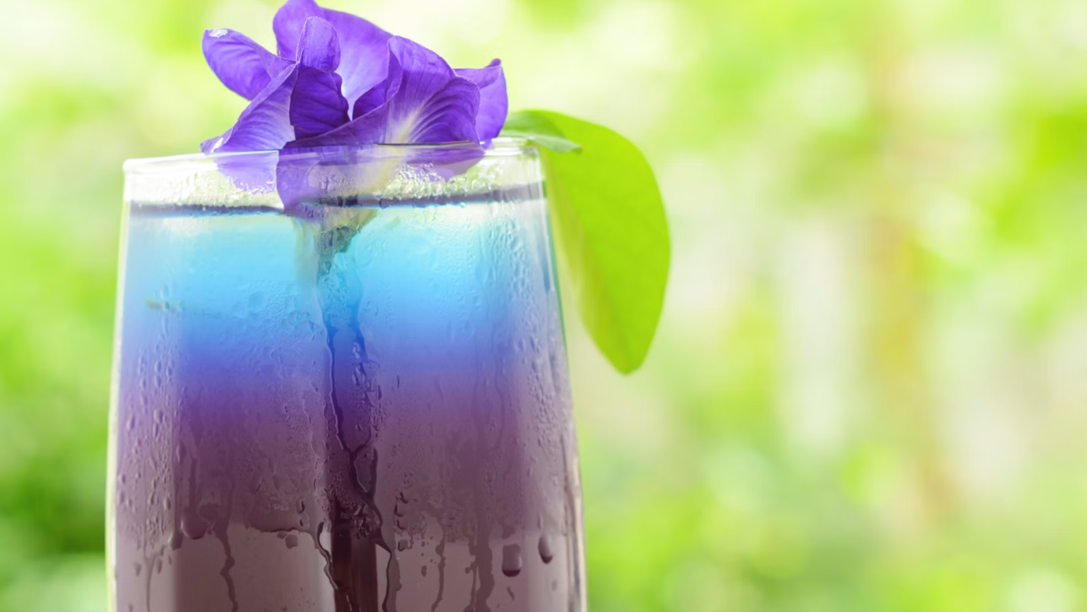 青ミカン果汁とバタフライピーを使って色鮮やかに変わるシロップを作りましょう。