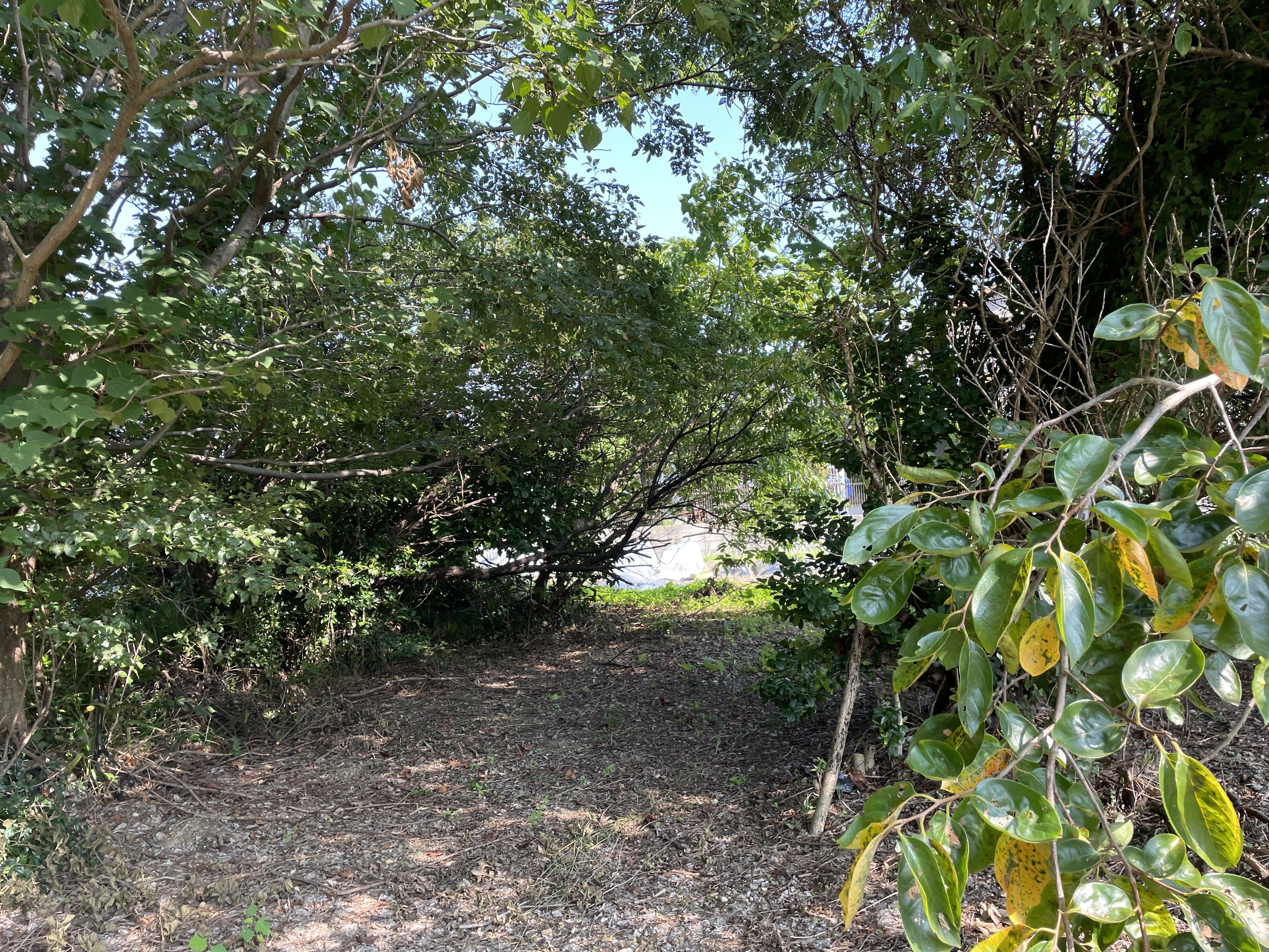 木の生い茂った緑のトンネル、広い草っ原や畑