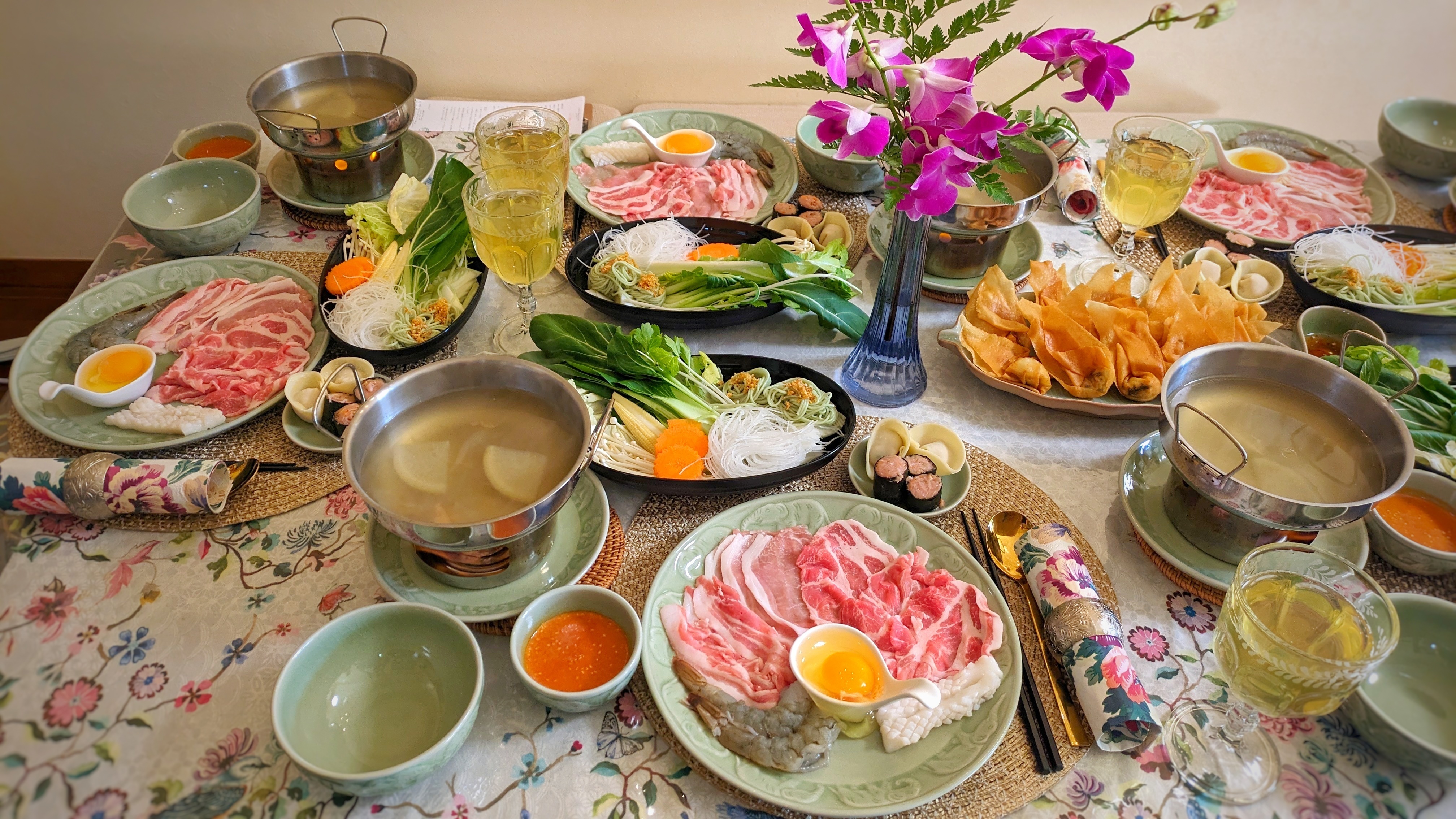 冬にはタイスキで体と心を温めましょう!メニュー★本格的なタイスキ&絶品の手作りピリ辛タレ肉、海鮮、手作りの肉団子、野菜各種、盛りだくさんの具をご用意します!お一人に一つのお鍋を楽しめます^ー^★海老の揚げワンタンサクサクで最高のおつまみになります!★揚げバナナ春巻き&バニラアイスクリーム添えバナナの甘味とパリッと揚げた春巻きとアイスクリームのコンビネーションは間違いなし!贅沢なデザートをお楽しみください^ー^皆様のご参加お待ちしております!