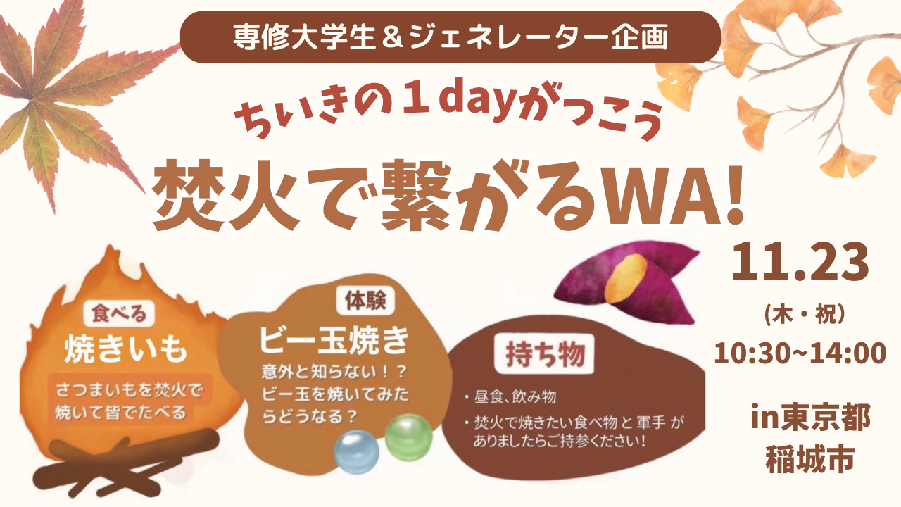 現在、専修大学の大学生7名とジェネレーターが中心となり、1dayちいきのがっこう🌳を開催しています✨