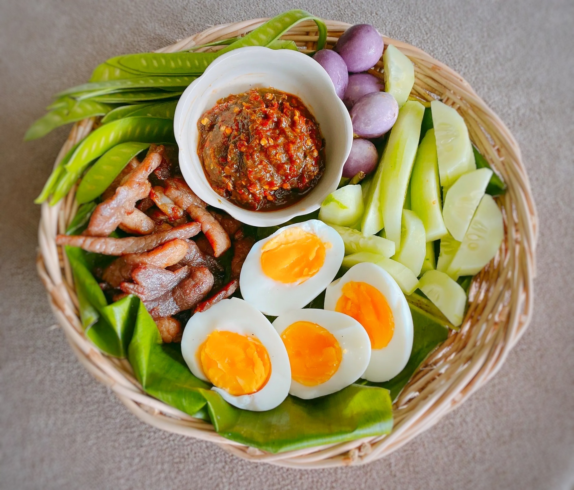 ★ナムプリック・ターデーン(赤唐辛子のチリディップ)&ゆで卵と野菜の盛合せ