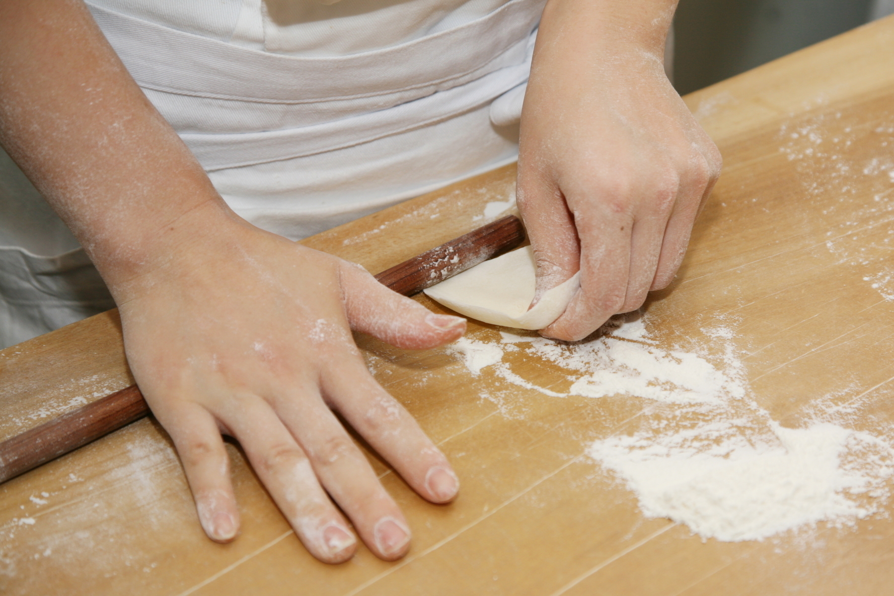 基本の手打ち皮のこね方、延ばし方、包み方などを中心に習得します。