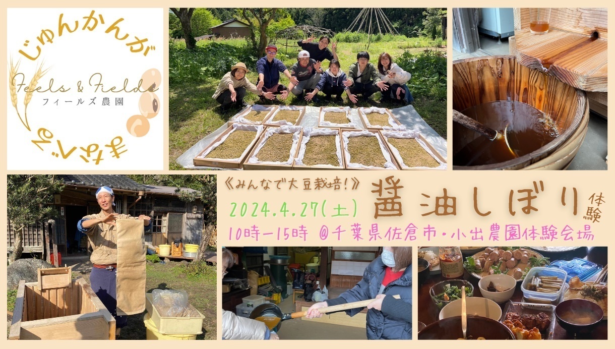 私たちの醤油作りは、昨年の醤油麹作りのさらに1年前の、大豆の種まきから始まっています。原料の大豆から育てて作った、フィールズ農園初の記念すべき手作り醤油。みなさんと一緒に、その完成を楽しく、おいしく、にぎやかにお祝いしたいと思います。