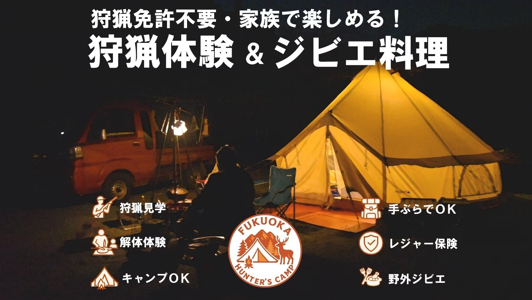 福岡ハンターズ・キャンプでは、手ぶらで楽しめるキャンププランもご用意しております。