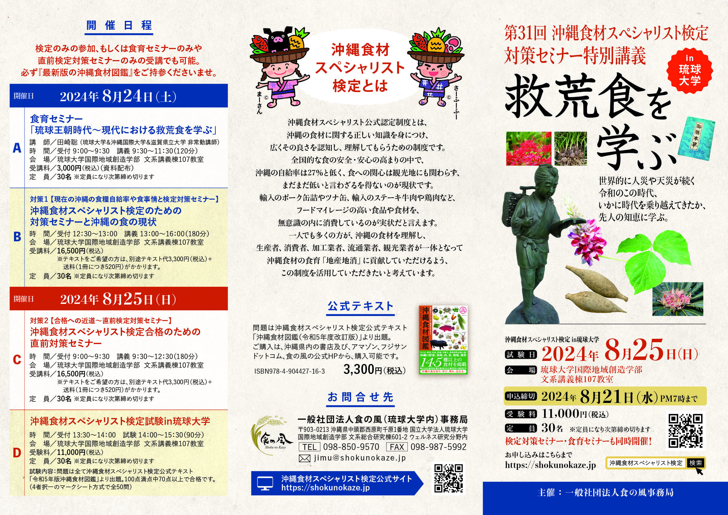 【第31回沖縄食材スペシャリスト検定&対策セミナー+食育セミナーのご案内】