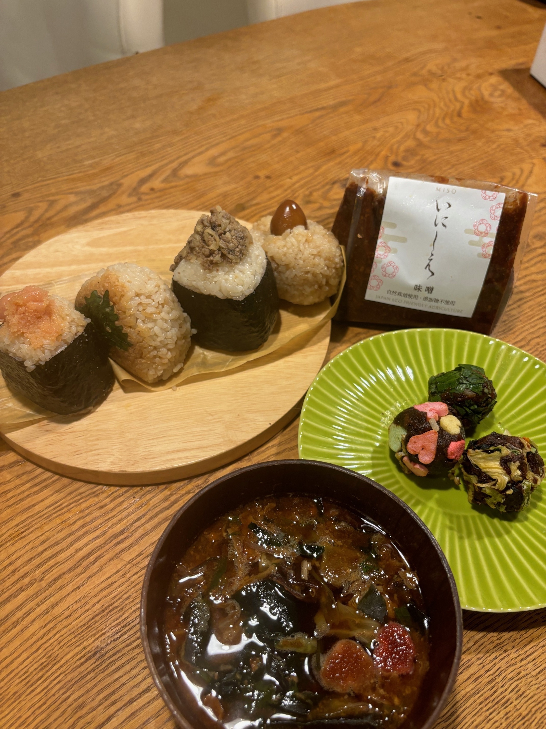この体験は、味噌玉とおにぎりをいろいろな具材で楽しんで、食べ比べてみよう!という会です。
