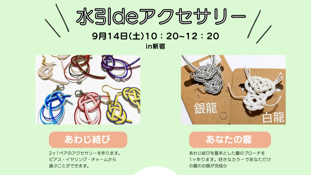あわじ結びを基本にしたオリジナルのアクセサリーを作成できます。