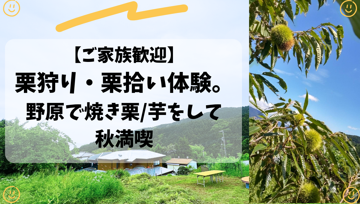 東京からも1時間程度でつく自然あふれる南足柄市矢倉沢地区で、栗狩り・栗拾いをします。