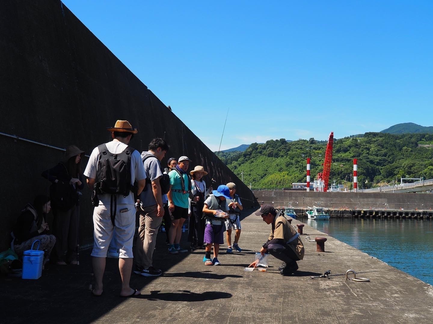 貸し出し釣り道具+安全装備一式を使いながら、堤防釣りの準備から魚の持ち帰り方、地魚の生態まで学べる体験型の釣り教室です。