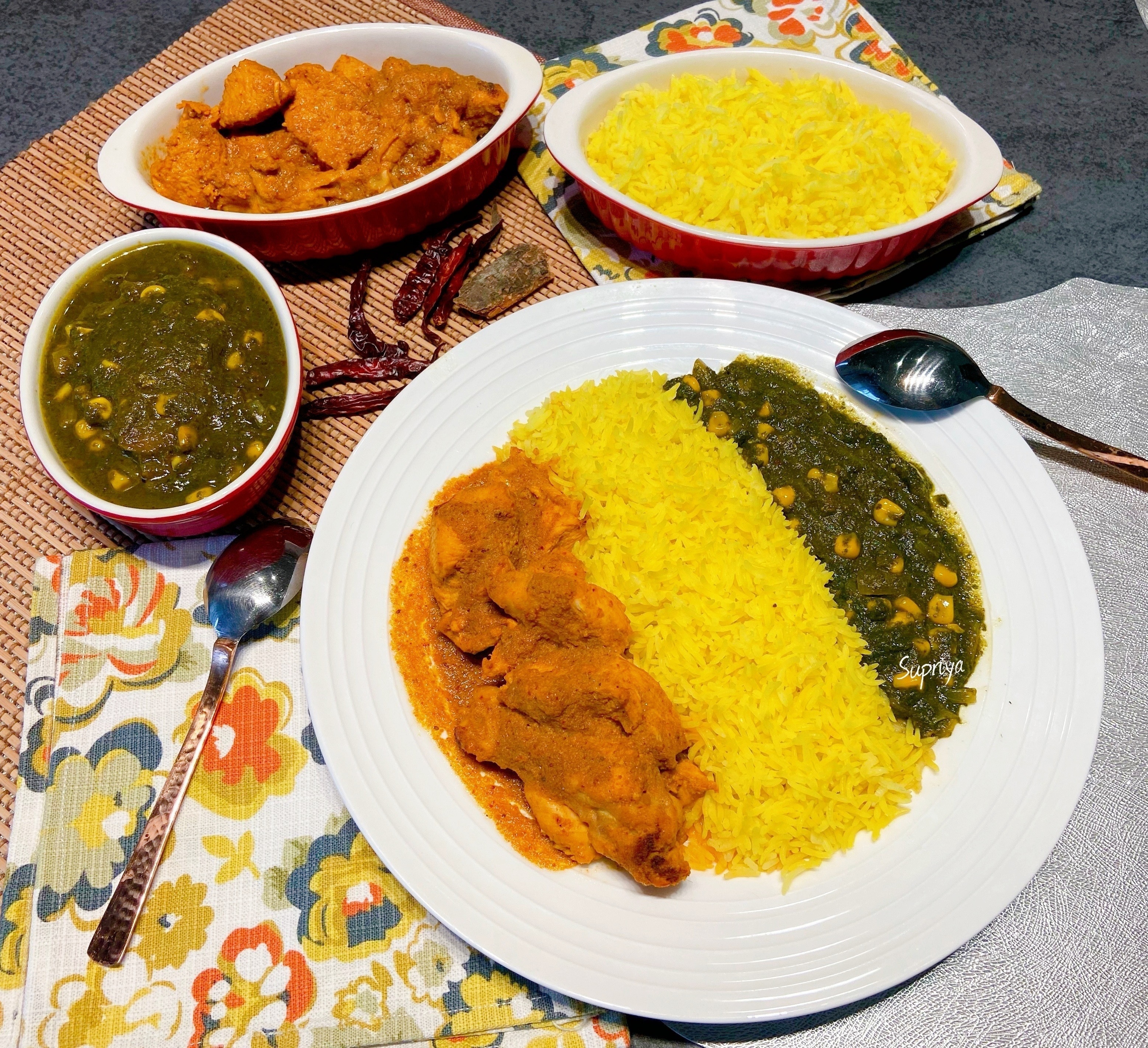 Palak corn curry is a rich, saucy dish that's made with fresh spinach and sweet corn. It is lightly spiced and perfectly creamy, and great to pair with Spicy Vindaloo dish.