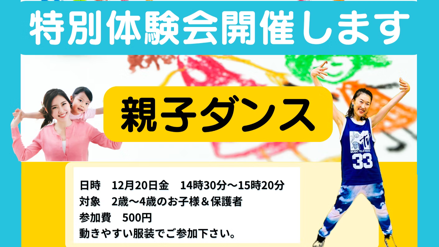 お子様と保護者の方が一緒に体を動かしたり、リズム遊びを楽しむ親子ダンスクラスです♪
