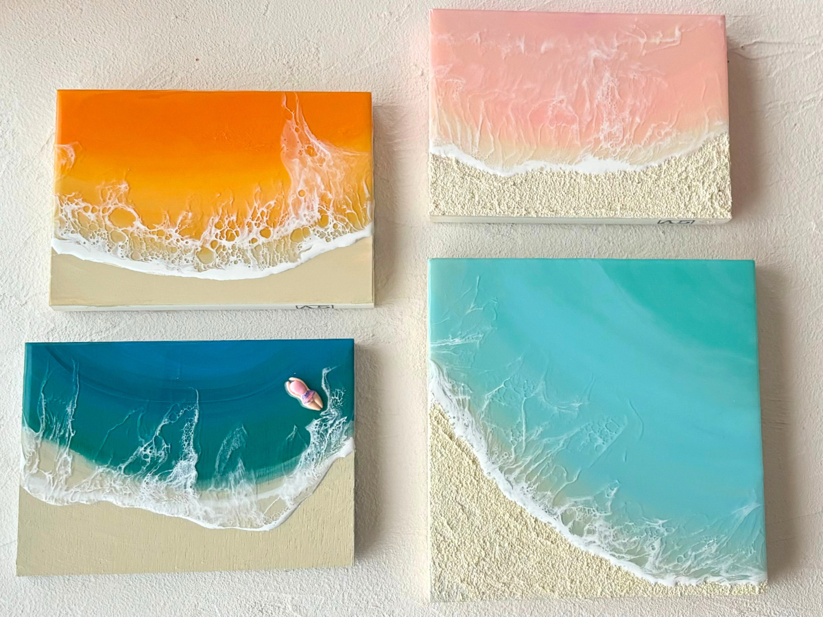 絵の具で海を描きレジンで