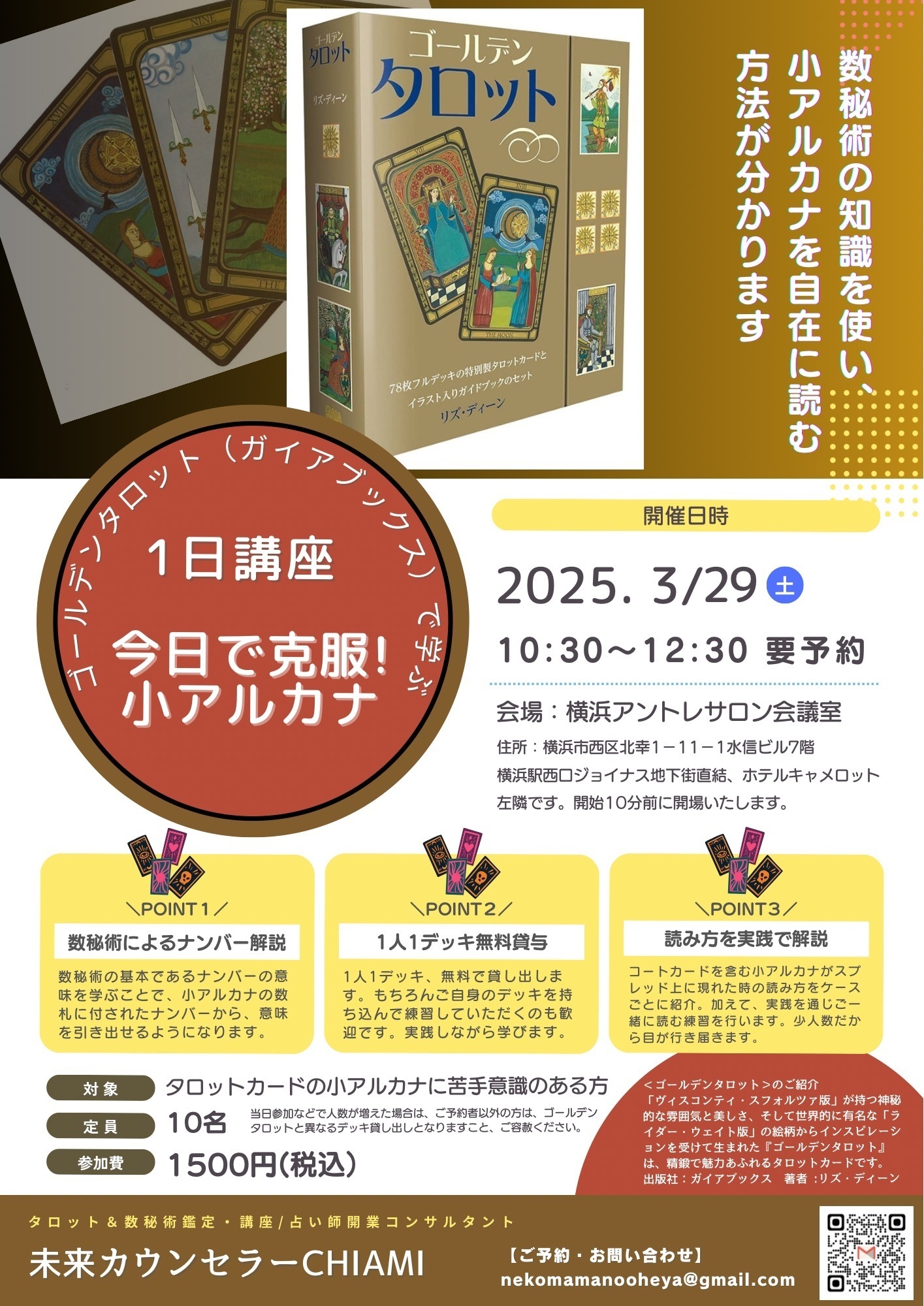 ※ 当日参加などで人数が増えた場合は、ご予約者以外の方は、ゴールデンタロットと異なるデッキ貸し出しとなりますこと、ご容赦ください。