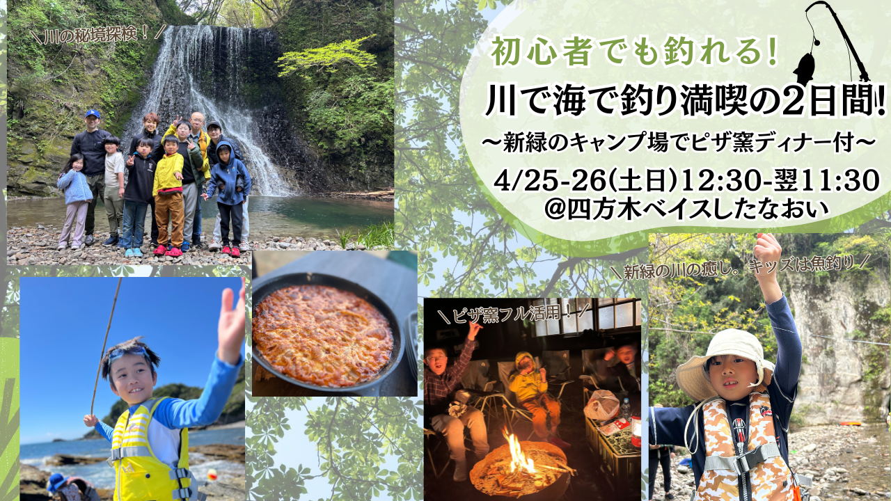 フィールドは鴨川市の秘境と呼ばれる「四方木(よもぎ)」。瑞々しい新緑の息吹あふれる山あいの古民家ベースにテント泊します。四方木(よもぎ)では、近くの川で川釣りと生き物探し。清流に棲む「ウグイ」や「オイカワ」を釣り上げましょう🎣