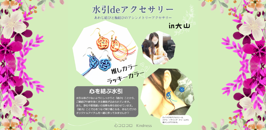 あなたの個性を活かし、縁起の良いオリジナルの水引アクセサリーをつくりましょう♪