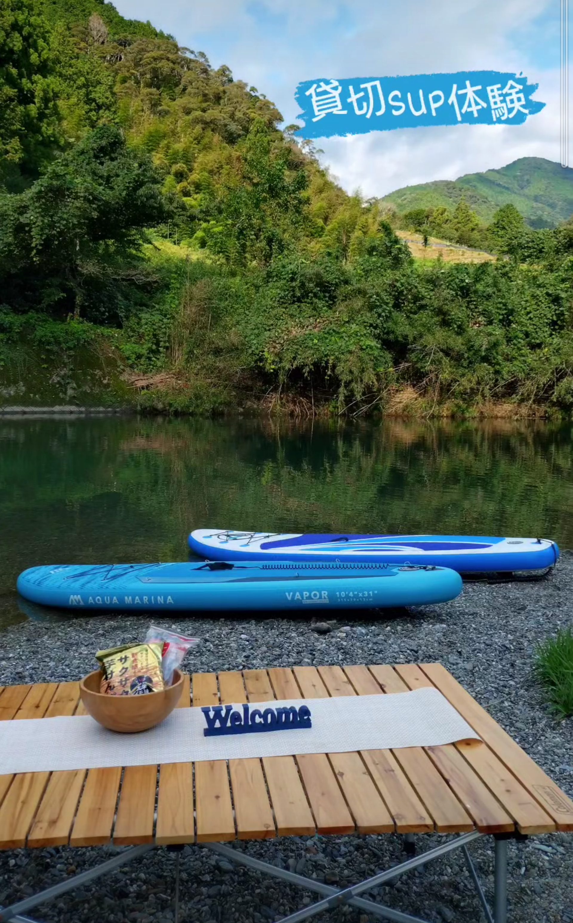 日本一の透明度を誇る仁淀川で各回一組限定で貸切SUP体験!自然に溶け込みプライベート空間をお楽しみ頂けます!透明度が高い時はまるで浮いてる用な感覚も!自由時間もありますので、思いっきり川遊びをお楽しみください?