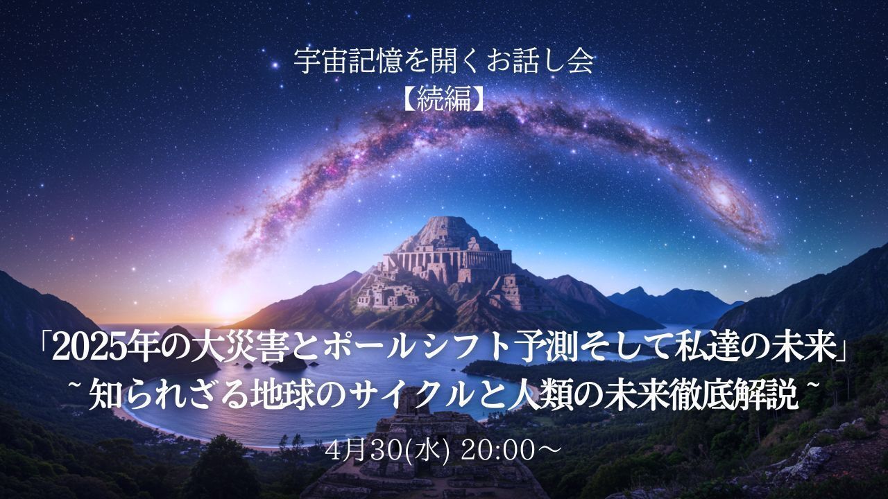 〈続編〉宇宙記憶を開くお話し会「2025年の大災害とポールシフト予測そして私達の未来」知られざる地球のサイクルと人類の未来徹底解説 !