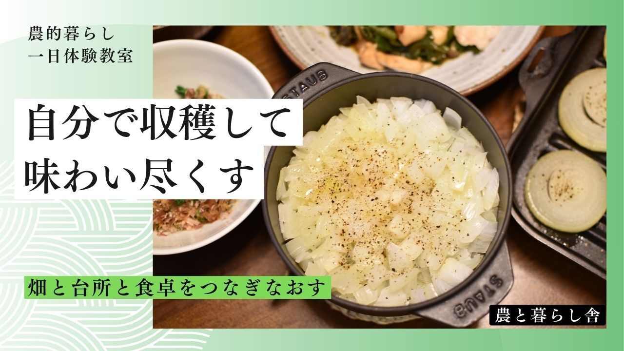 体験料、持ち帰りの玉ねぎ15個、手づくりする玉ねぎ麹、身土不二ごはん(昼食)