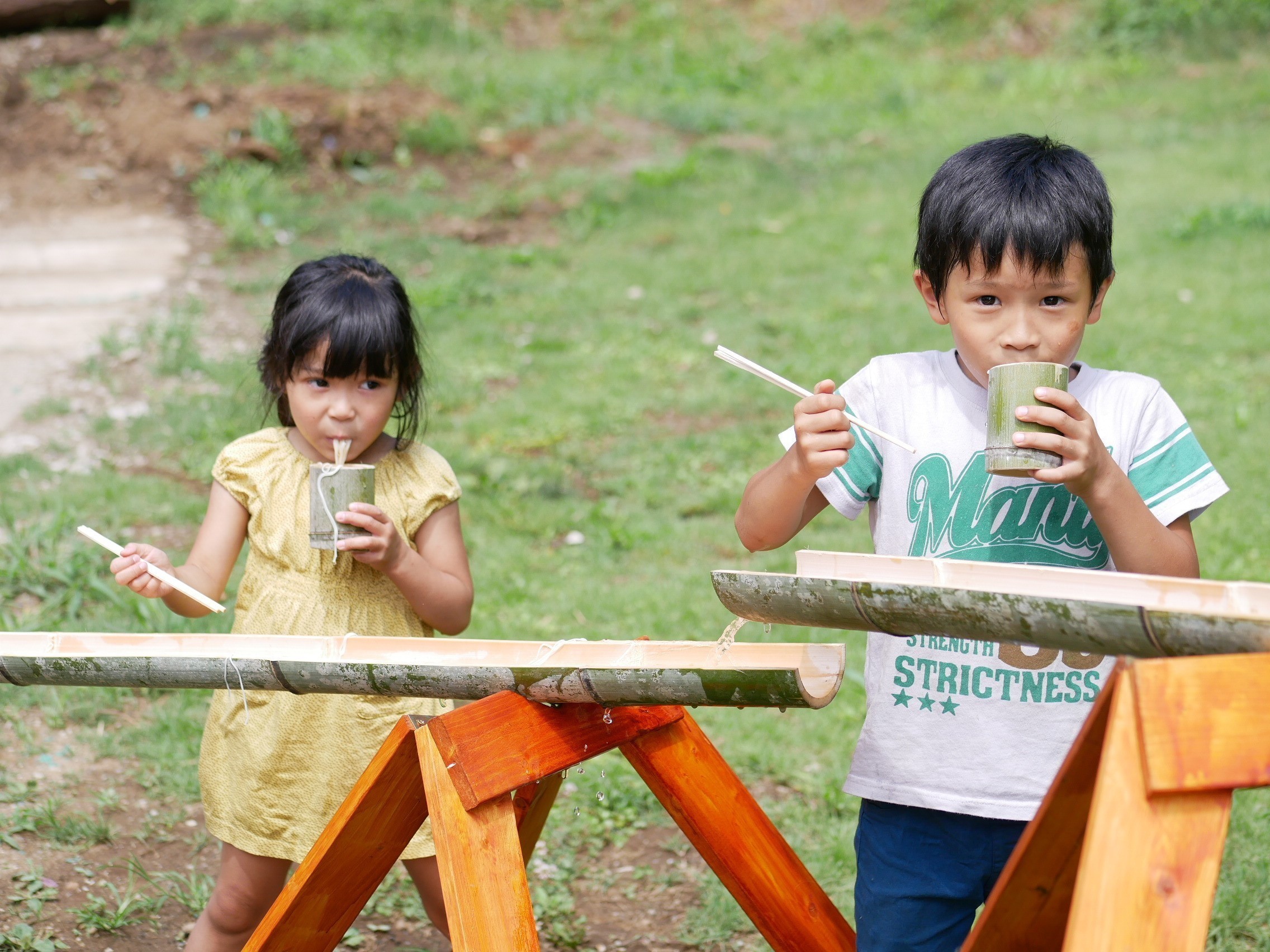 千葉 八街のリゾート、夏の風物詩”流しそうめん”&天ぷら&プール。
