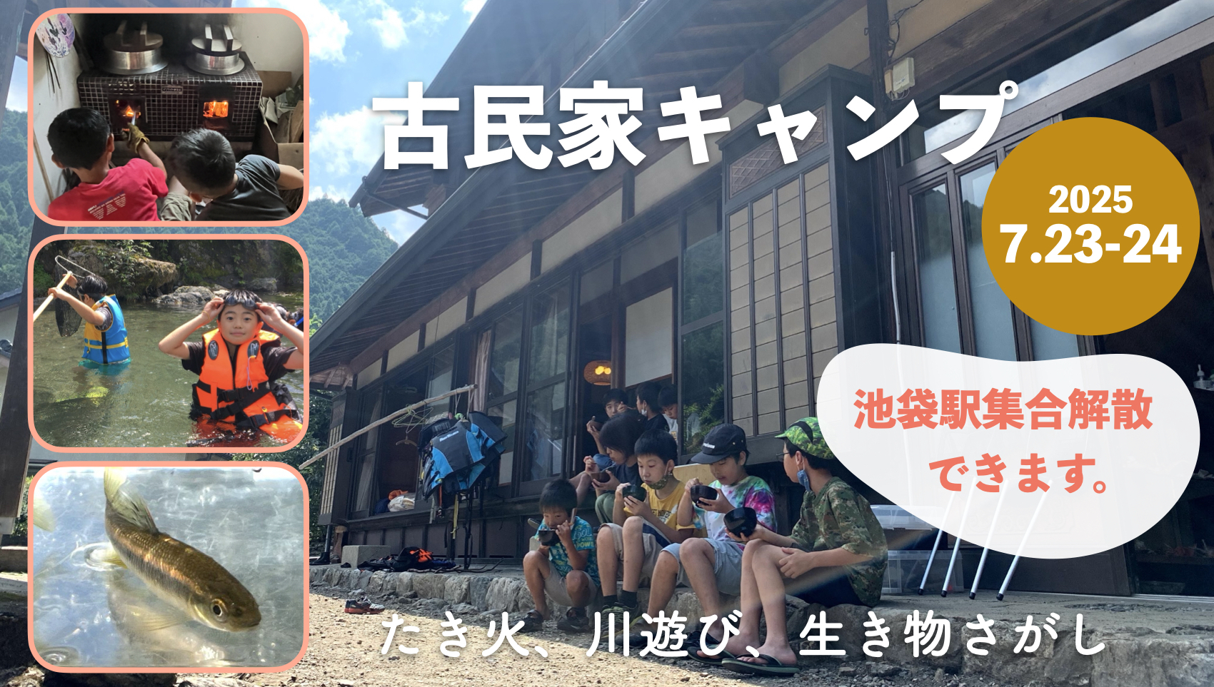 埼玉県飯能市、荒川の上流の入間川のさらに上流、名栗川のほとりにある築100年以上、明治時代に建てられた古民家で1泊2日のプログラムを行います。