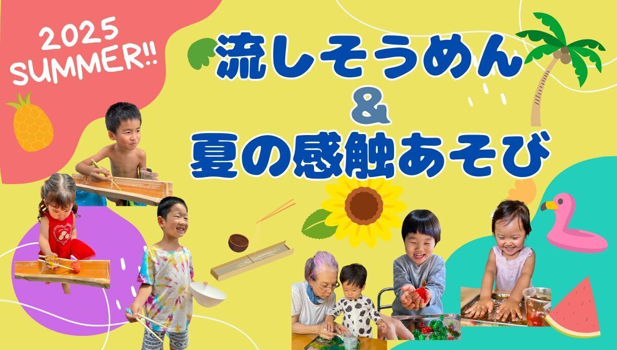 みんなで流しそうめんを食べて、夏らしいひんやり感触あそびも楽しみましょう💛